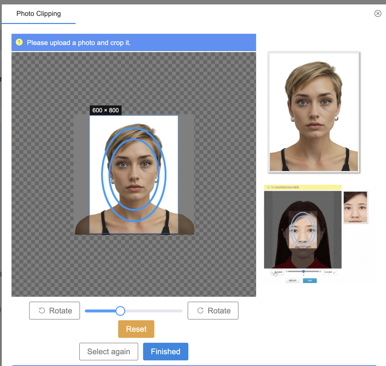Your photo should be taken in full-face view. Please re-upload a photo that meets the requirements.